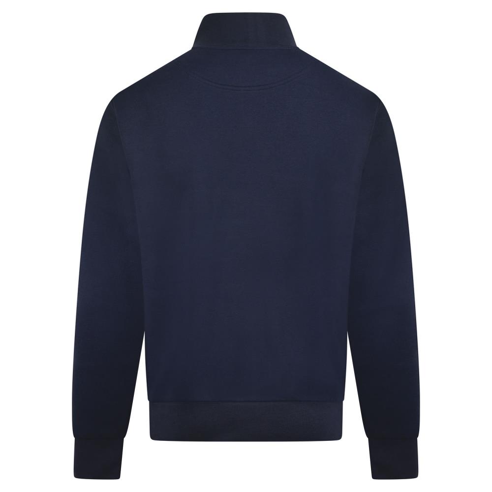 Deze zipnecksweater combineert voorgekrompen katoen en gerecycled polyester voor duurzaamheid en comfort. Met een stevige ribkraag, ribboorden en een degelijke metalen rits, biedt hij zowel stijl als functionaliteit. Perfect voor dagelijks gebruik en werkkleding.
