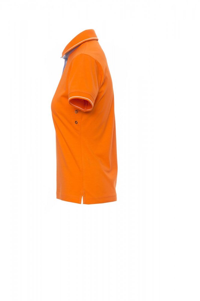 Nauwsluitend damespoloshirt met korte mouwen met 6 witte knopen, binnenkraag, overslag en...meer