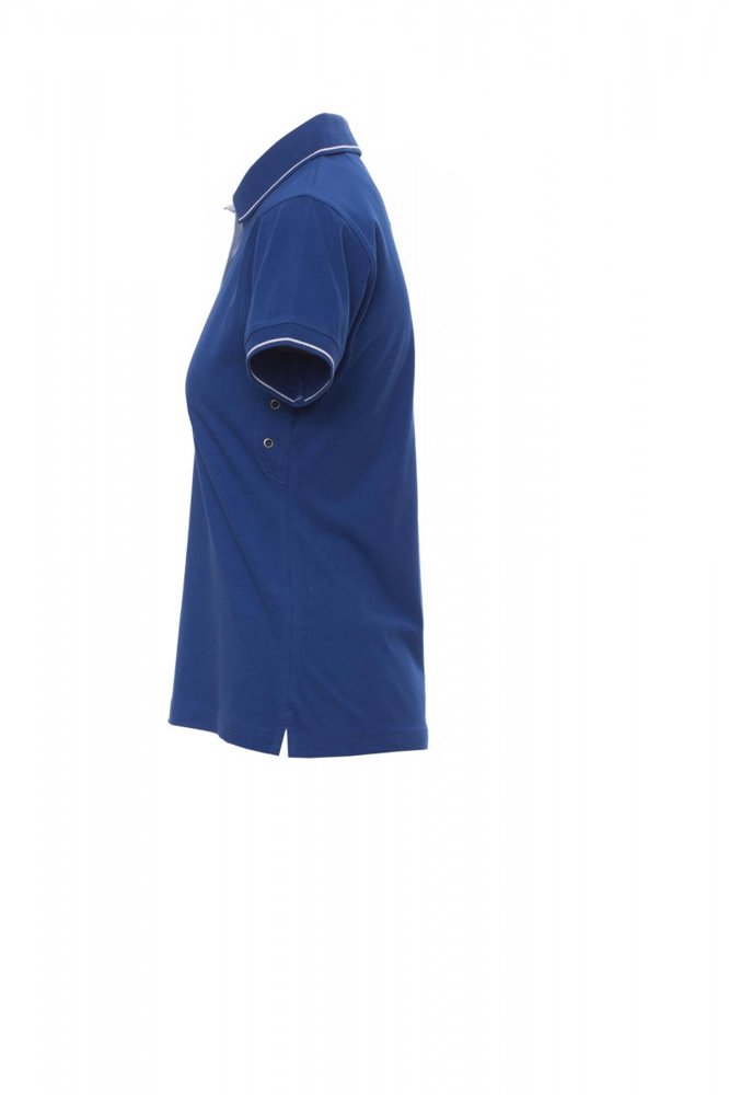 Nauwsluitend damespoloshirt met korte mouwen met 6 witte knopen, binnenkraag, overslag en...meer