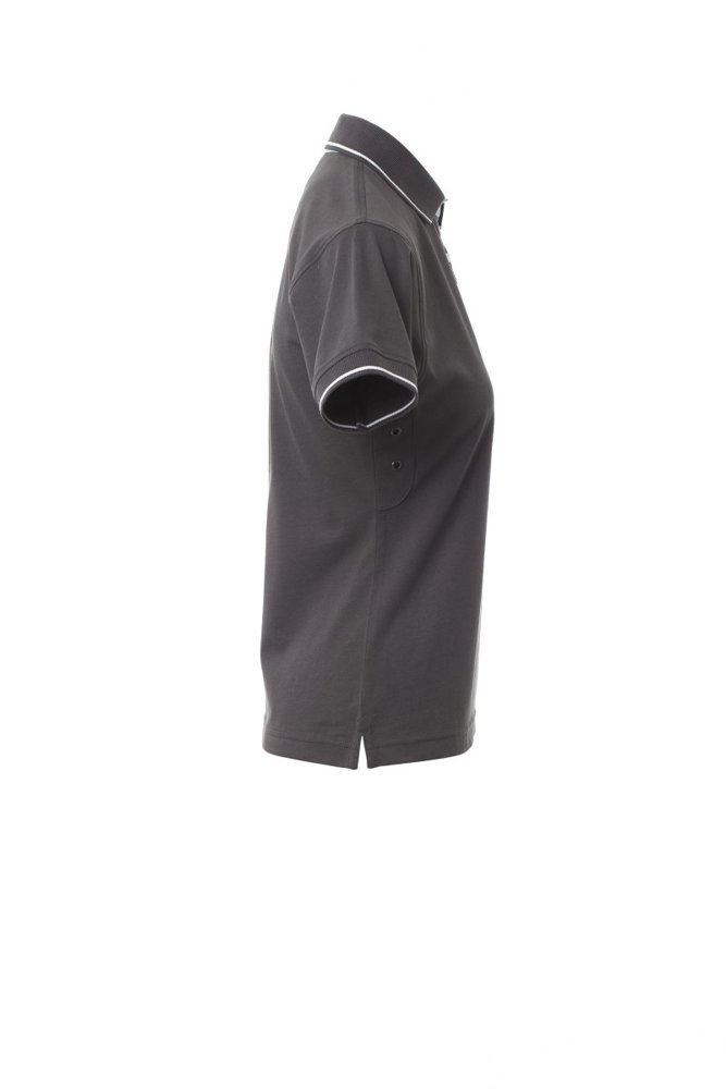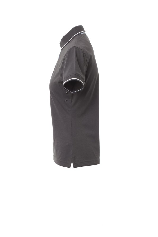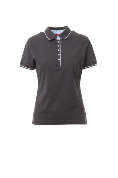 Nauwsluitend damespoloshirt met korte mouwen met 6 witte knopen, binnenkraag, overslag en...meer