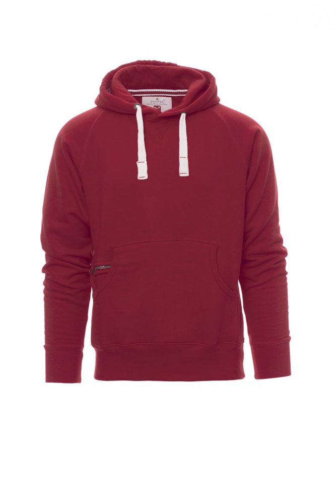 Herenhoodie met dubbel gestikte naden en wit trekkoord met contrasterend stiksel en metalen ringen, raglanmouwen, V-stiksel bij de hals, kangoeroezakken, kleine zak met rits, ribboorden met stretch aan de zoom en mouwen, versterkte naden.