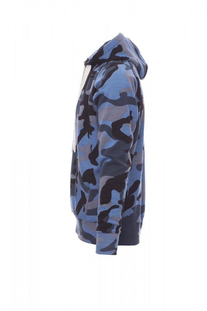 Herenhoodie met dubbel gestikte naden en wit trekkoord met contrasterend stiksel en metalen ringen, raglanmouwen, V-stiksel bij de hals, kangoeroezakken, kleine zak met rits, ribboorden met stretch aan de zoom en mouwen, versterkte naden.