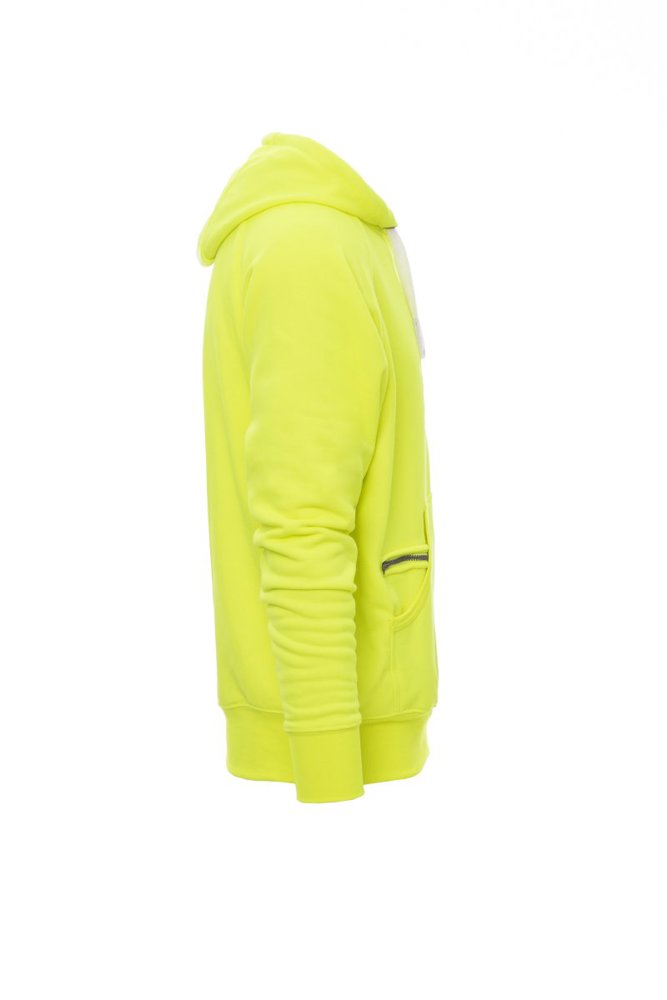 Herenhoodie met dubbel gestikte naden en wit trekkoord met contrasterend stiksel en metalen ringen, raglanmouwen, V-stiksel bij de hals, kangoeroezakken, kleine zak met rits, ribboorden met stretch aan de zoom en mouwen, versterkte naden.