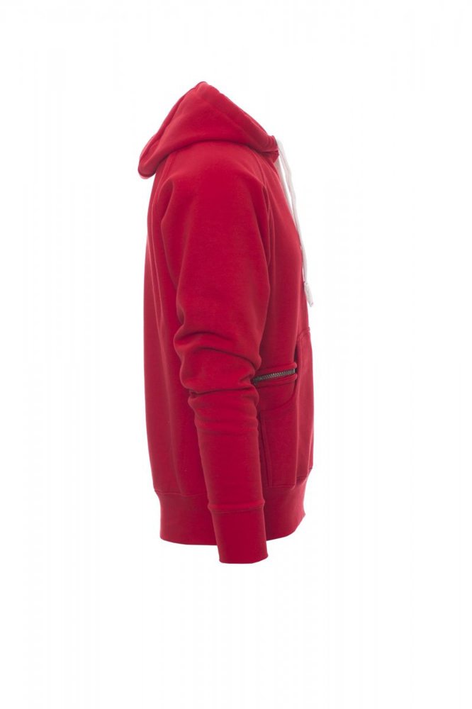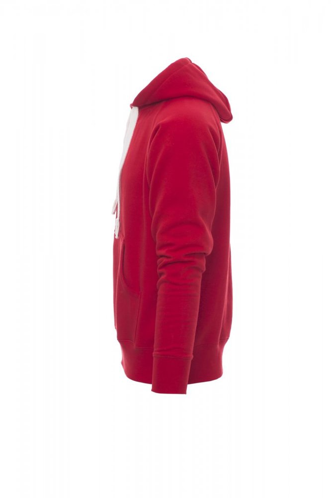 Herenhoodie met dubbel gestikte naden en wit trekkoord met contrasterend stiksel en metalen ringen, raglanmouwen, V-stiksel bij de hals, kangoeroezakken, kleine zak met rits, ribboorden met stretch aan de zoom en mouwen, versterkte naden.