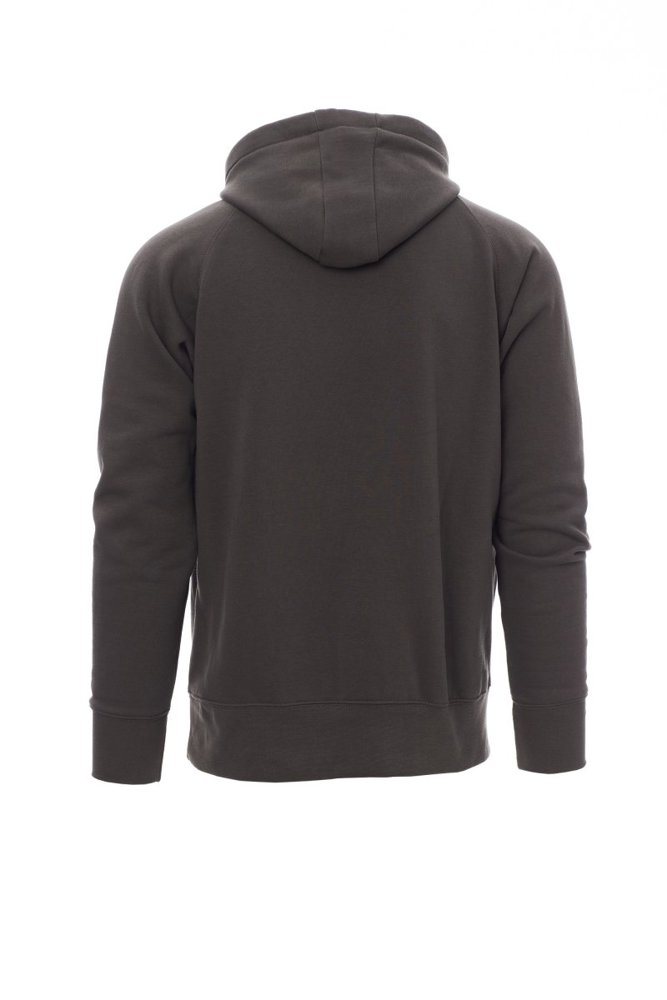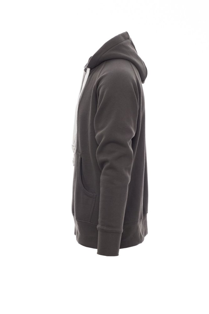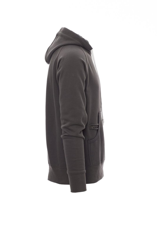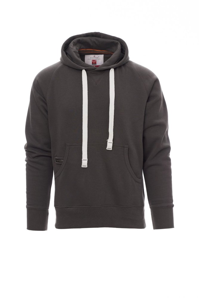 Herenhoodie met dubbel gestikte naden en wit trekkoord met contrasterend stiksel en metalen ringen, raglanmouwen, V-stiksel bij de hals, kangoeroezakken, kleine zak met rits, ribboorden met stretch aan de zoom en mouwen, versterkte naden.