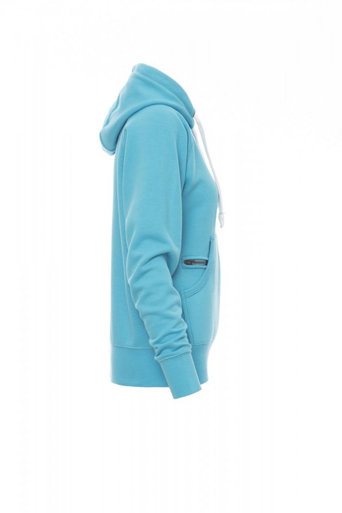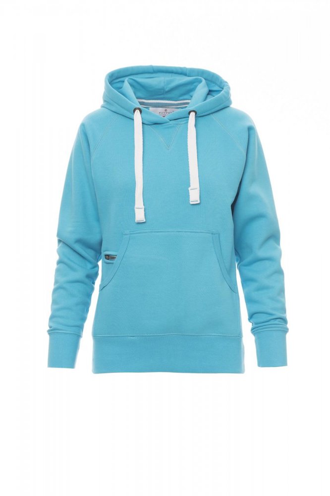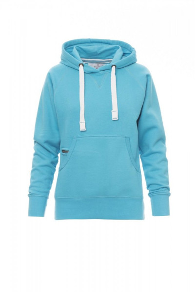Nauwsluitende dameshoodie met dubbel gestikte naden en wit trekkoord met contrasterend stiksel en...meer