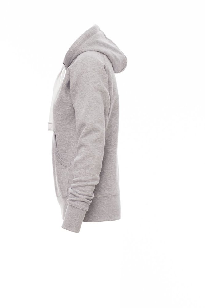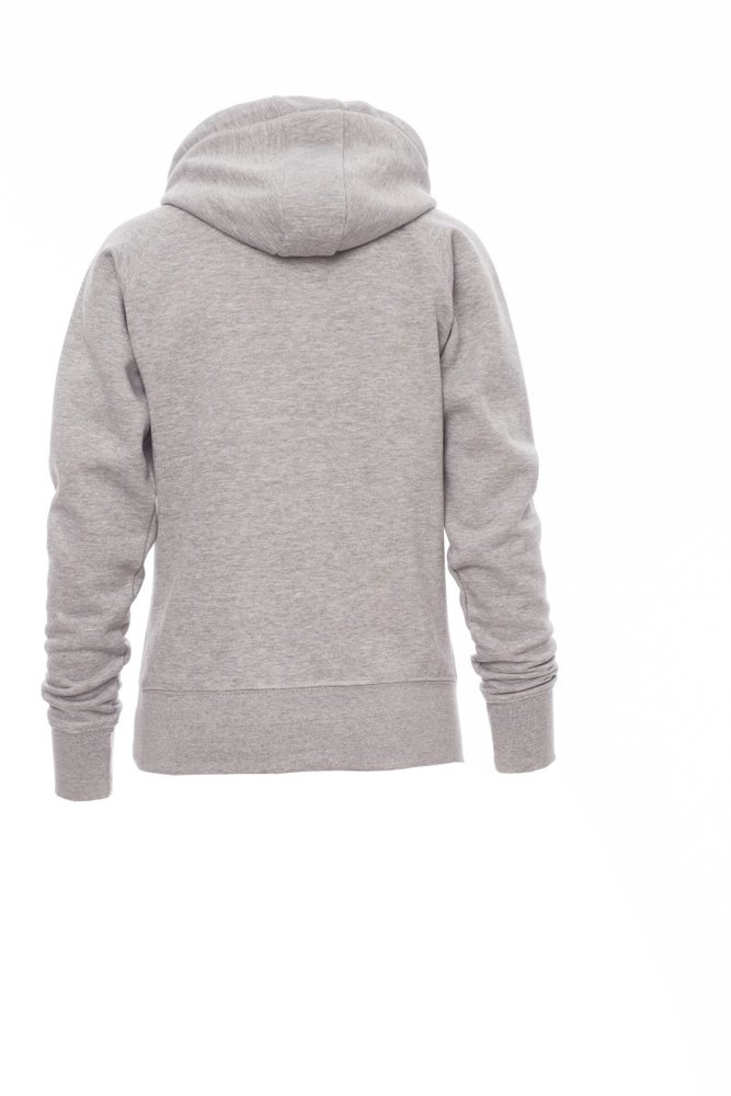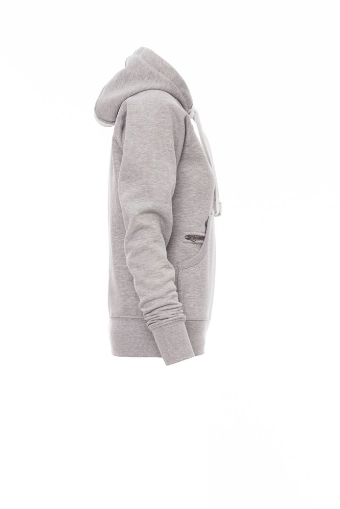 Nauwsluitende dameshoodie met dubbel gestikte naden en wit trekkoord met contrasterend stiksel en metalen ringen, raglanmouwen, V-stiksel bij de hals, kangoeroezakken, kleine zak met rits, ribboorden met stretch aan de zoom en mouwen, versterkte naden.