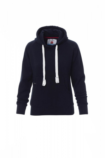 Nauwsluitende dameshoodie met dubbel gestikte naden en wit trekkoord met contrasterend stiksel en...meer