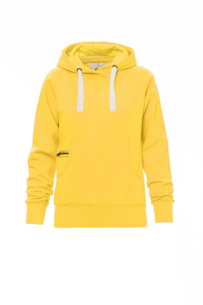 Nauwsluitende dameshoodie met dubbel gestikte naden en wit trekkoord met contrasterend stiksel en...meer
