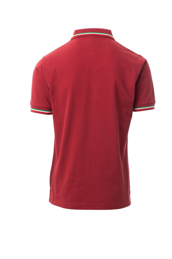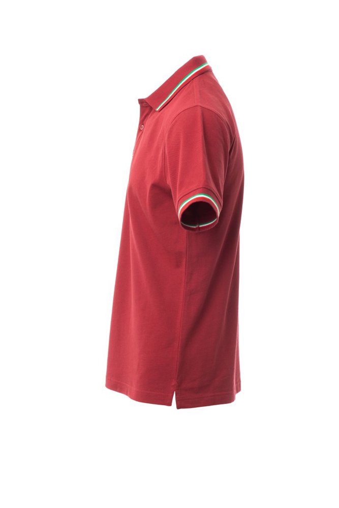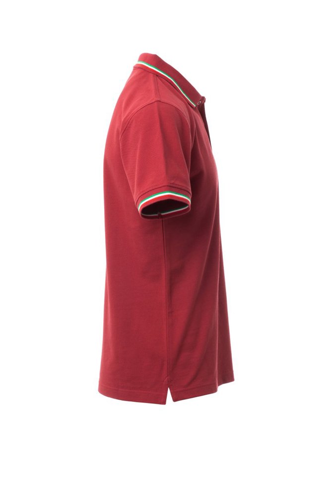 Unisex poloshirt met korte mouwen met 3 gekleurde knopen, kraag en mouwen met contrasterende rand (kleuren van de vlag), ribkraag en geribde mouwboorden, zijsplitten met versterkte naden, verborgen stiksels bij de kraag, versterkingsband aan de zijkant, elastische naden, band aan de binnenzijde van de nek.