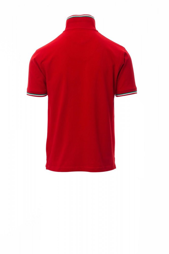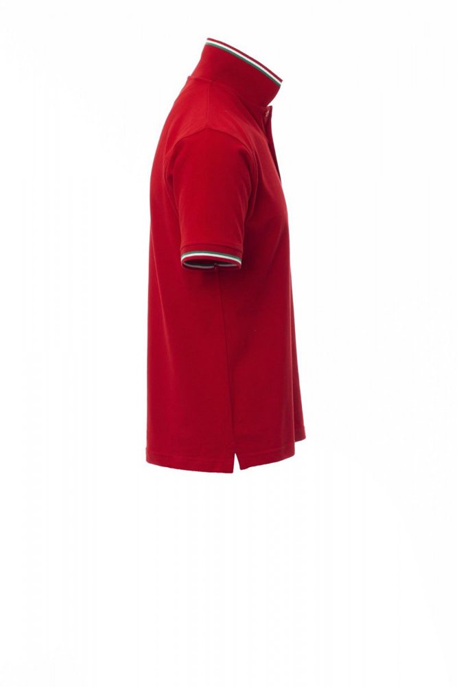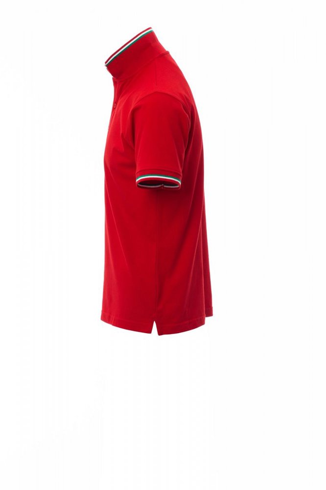 Unisex poloshirt met korte mouwen met 3 gekleurde knopen, kraag en mouwen met contrasterende rand (kleuren van de vlag), ribkraag en geribde mouwboorden, zijsplitten met versterkte naden, verborgen stiksels bij de kraag, versterkingsband aan de zijkant, elastische naden, band aan de binnenzijde van de nek.