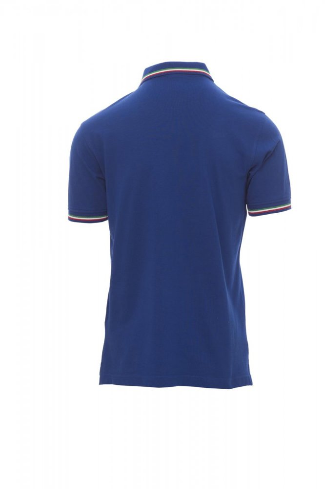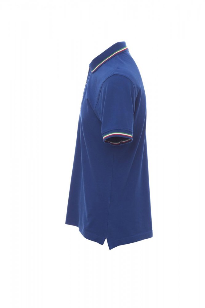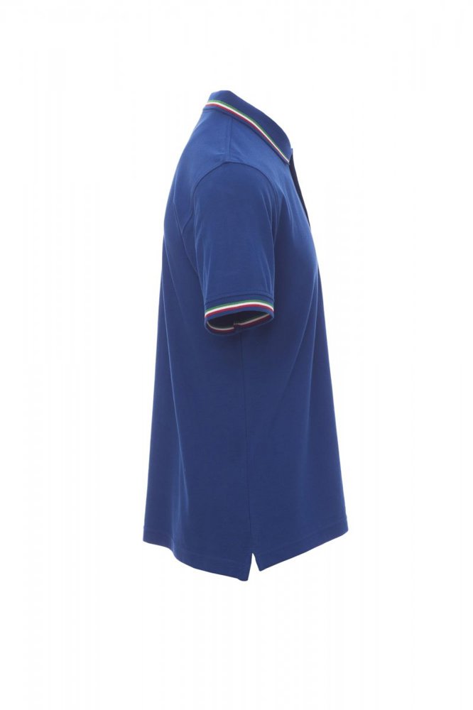 Unisex poloshirt met korte mouwen met 3 gekleurde knopen, kraag en mouwen met contrasterende rand (kleuren van de vlag), ribkraag en geribde mouwboorden, zijsplitten met versterkte naden, verborgen stiksels bij de kraag, versterkingsband aan de zijkant, elastische naden, band aan de binnenzijde van de nek.