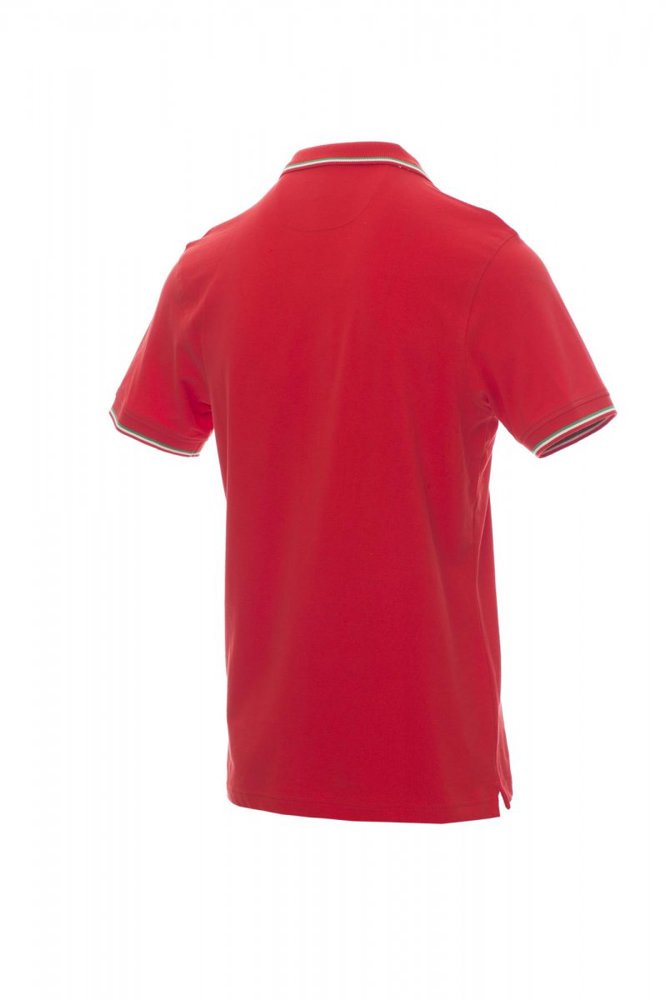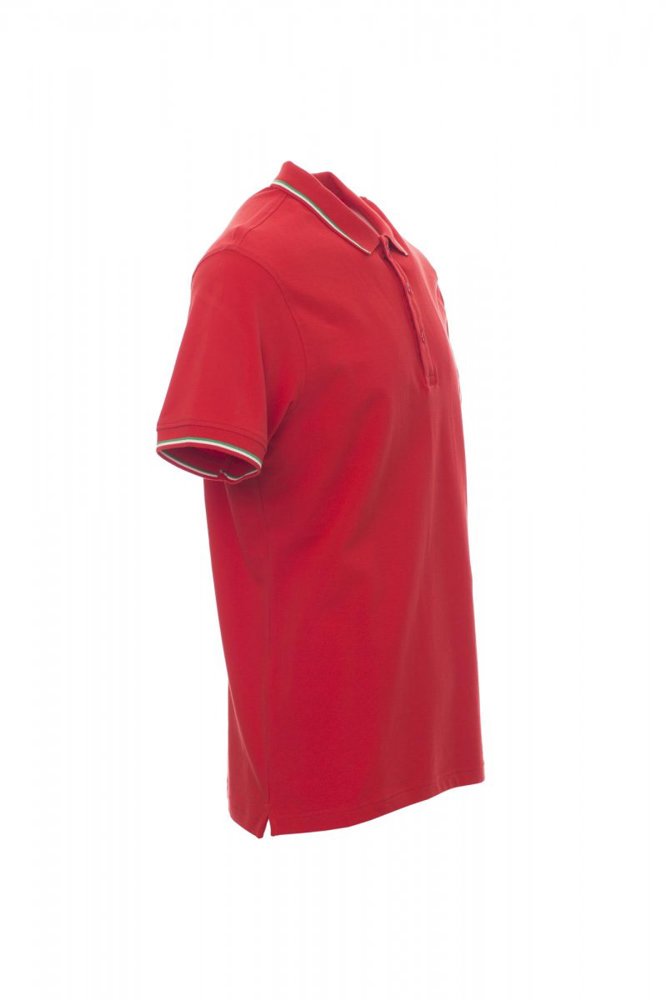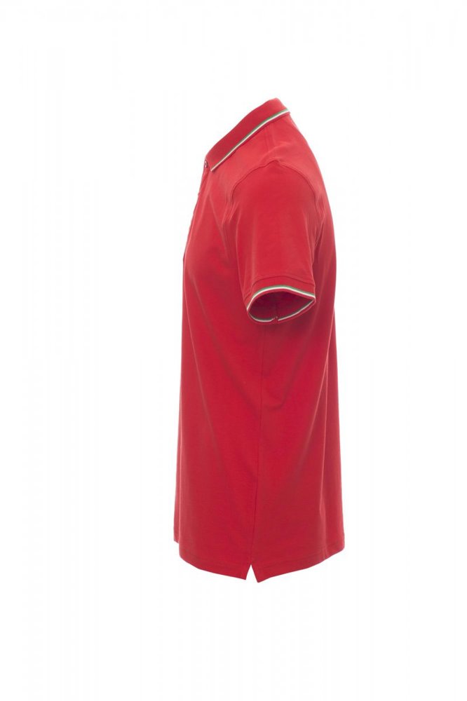 Unisex poloshirt met korte mouwen met 3 gekleurde knopen, kraag en mouwen met contrasterende rand (kleuren van de vlag), ribkraag en geribde mouwboorden, zijsplitten met versterkte naden, verborgen stiksels bij de kraag, versterkingsband aan de zijkant, elastische naden, band aan de binnenzijde van de nek.