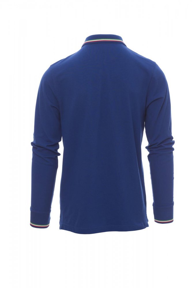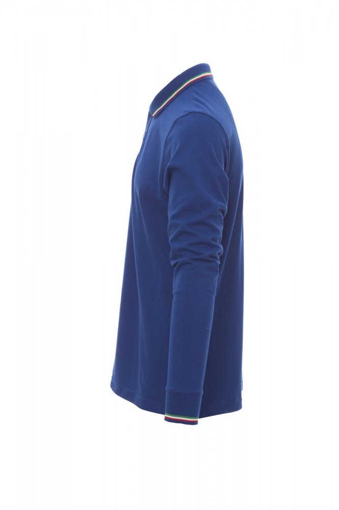 Unisex poloshirt met lange mouwen met 3 bijpassende knopen, kraag en mouwen met rand (kleuren van de vlag), ribkraag en geribde mouwboorden, zijsplitten, verborgen stiksels bij de kraag, versterkingsband aan de zijkant, band aan de binnenzijde van de nek.