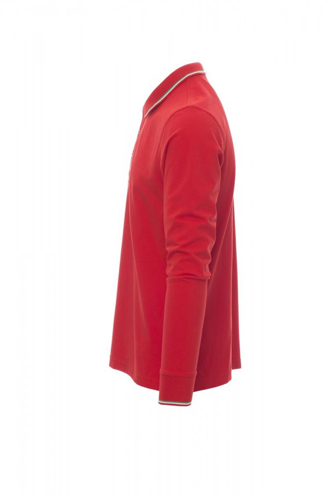 Unisex poloshirt met lange mouwen met 3 bijpassende knopen, kraag en mouwen met rand (kleuren van de vlag), ribkraag en geribde mouwboorden, zijsplitten, verborgen stiksels bij de kraag, versterkingsband aan de zijkant, band aan de binnenzijde van de nek.