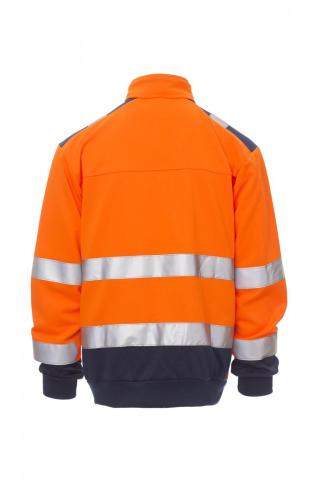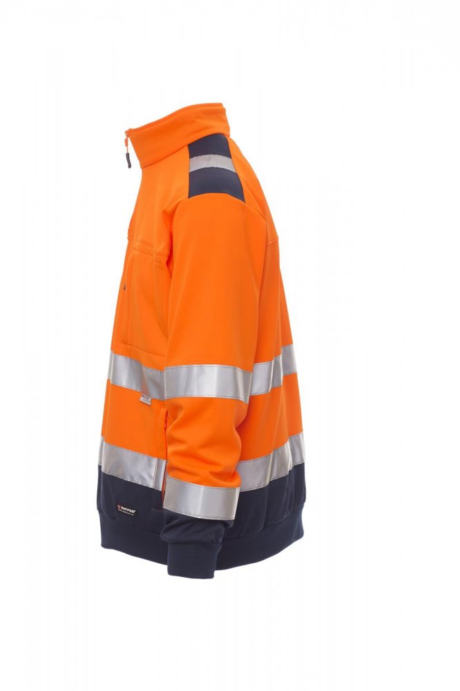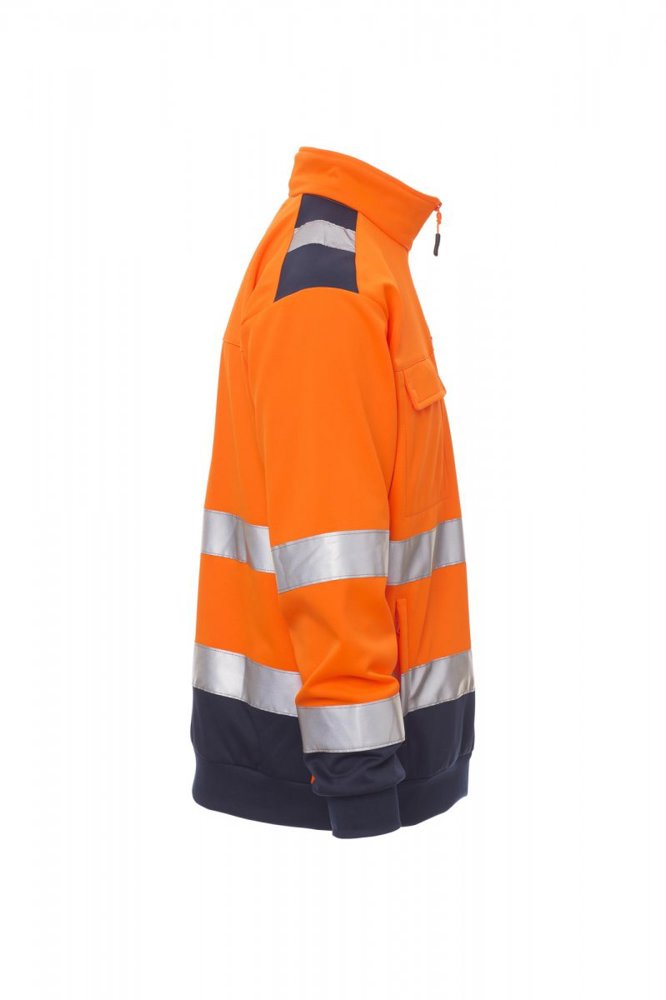 Herensweatshirt met hoge zichtbaarheid, met 3M-strepen, korte nylon rits met metalen runner, ribboorden met stretch aan de zoom en mouwen, twee zakken voor met verdekte rits, een borstzak met het LOCK SYSTEM met afneembare, uitvouwbare badgehouder en een zak met rits met versterkte naden