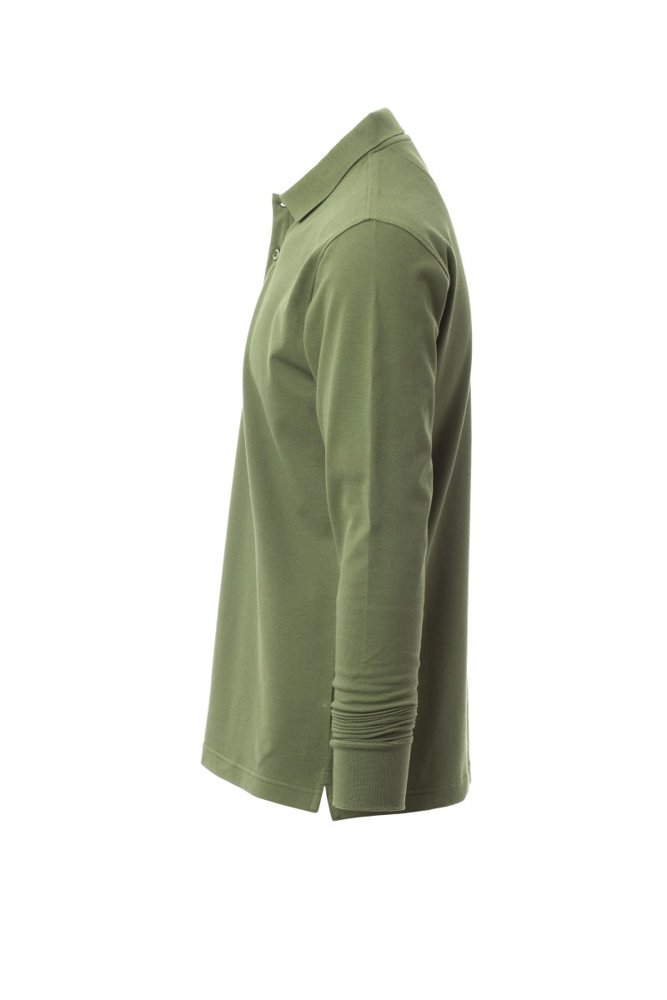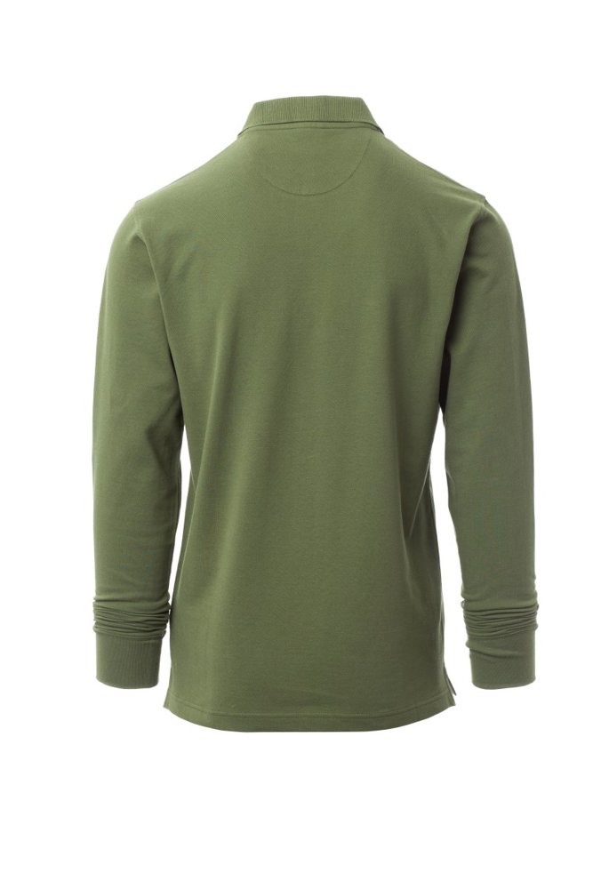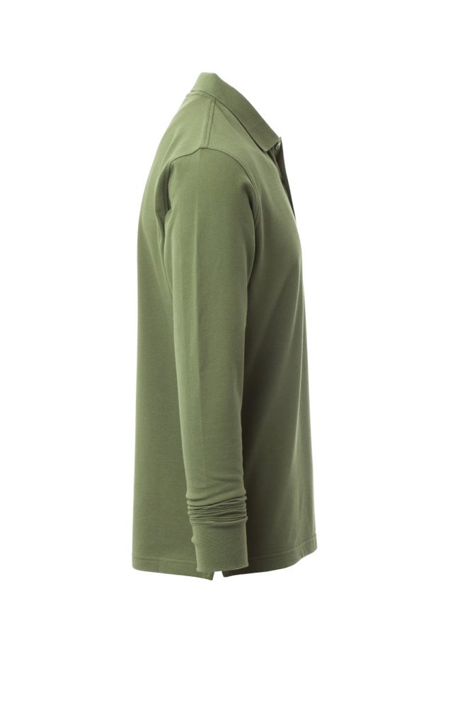 Herenpoloshirt met lange mouwen met 3 bijpassende knopen met parelmoereffect, ribkraag en ribboorden aan de mouwen, zijsplitten, verborgen stiksels bij de kraag met contrasterende band, elastische naden, versterkingsband aan de zijkant, band aan de binnenkant van de nek.