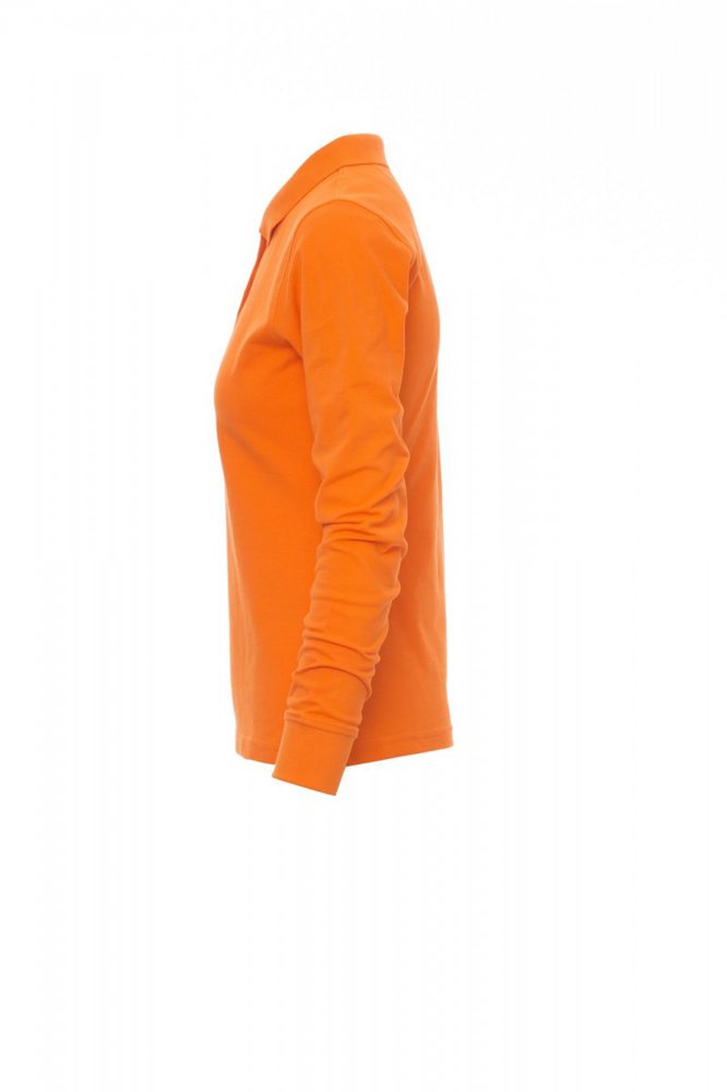 Nauwsluitend damespoloshirt met lange mouwen met 4 bijpassende knopen met parelmoereffect, ribkraag en ribboorden aan de mouwen, zijsplitten, verborgen stiksels bij de kraag met contrasterende band, elastische naden, versterkingsband aan de zijkant, band aan de binnenkant van de nek.