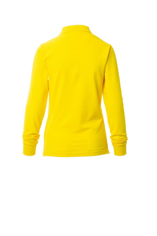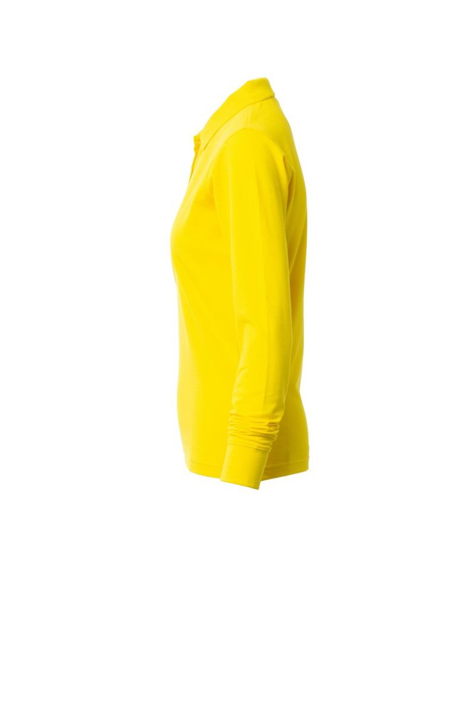 Nauwsluitend damespoloshirt met lange mouwen met 4 bijpassende knopen met parelmoereffect, ribkraag en ribboorden aan de mouwen, zijsplitten, verborgen stiksels bij de kraag met contrasterende band, elastische naden, versterkingsband aan de zijkant, band aan de binnenkant van de nek.
