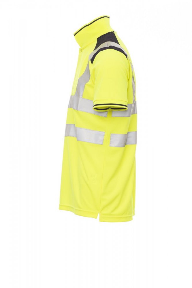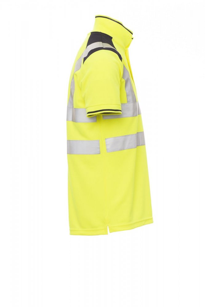 Herenpoloshirt met hoge zichtbaarheid, met korte mouwen, in twee kleuren, met reflecterende strepen, met drie bijpassende knopen met parelmoereffect, contrasterende fijne ribkraag en mouwrand, zijsplitten, verborgen stiksel bij de kraag.