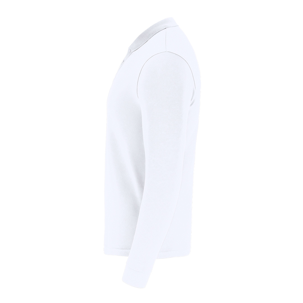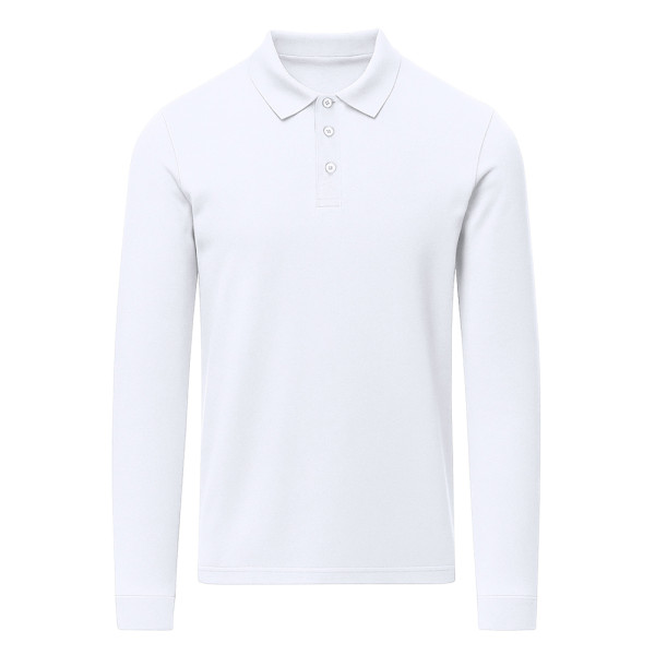 Unisex poloshirt met lange mouwen, gemaakt van piquéstof. Kraag en boorden in 1x1 rib met elastaan voor betere pasvorm en comfort. Sluiting met drie knopen in bijpassende kleur en verstevigde nektape.