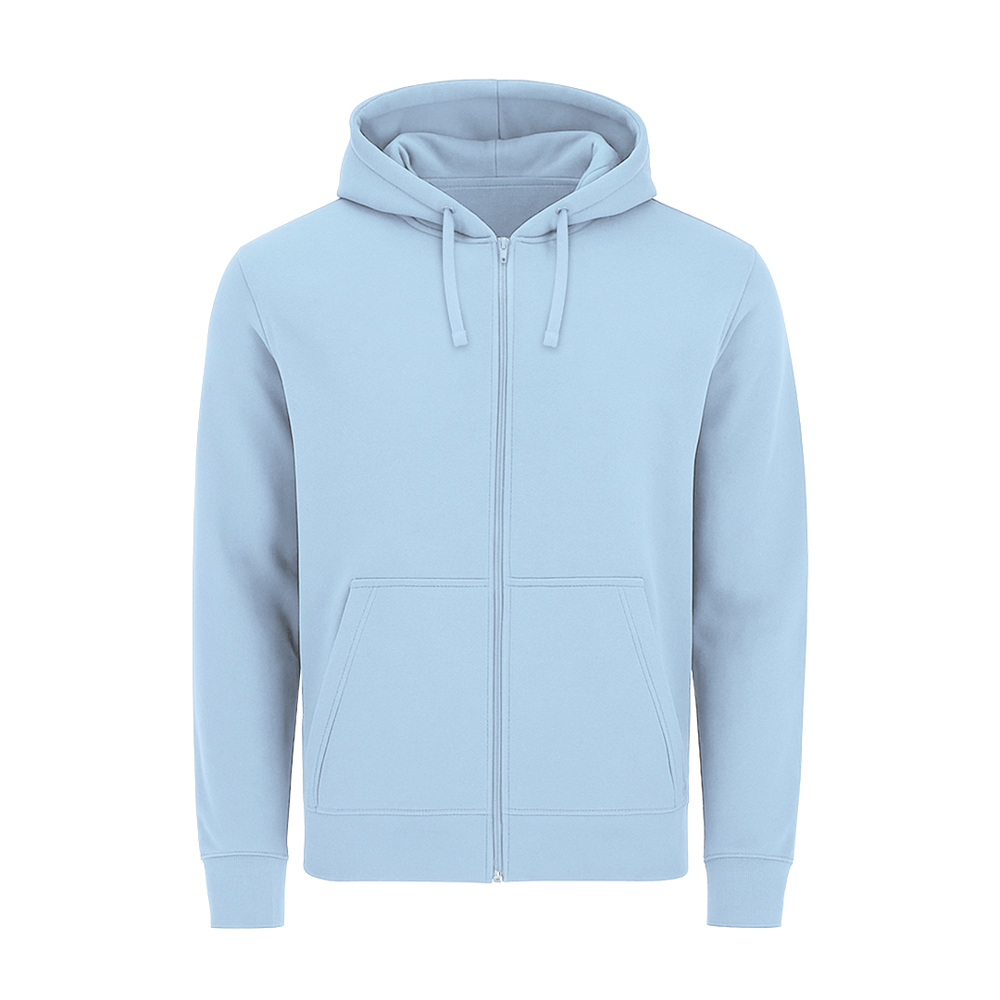 Unisex hoodie met gevoerde capuchon in bijpassende dubbele stof. Gemaakt van katoen en polyester in zacht geruwd fleece 280 g/m. Voorzien van volledige ritssluiting aan de voorkant in bijpassende kleur, verstelbaar trekkoord met bijpassende metalen oogjes, kangoeroezak, verstevigd nektape en manchetten en tailleband in 1x1 ribtricot met elastaan voor betere pasvorm en comfort.