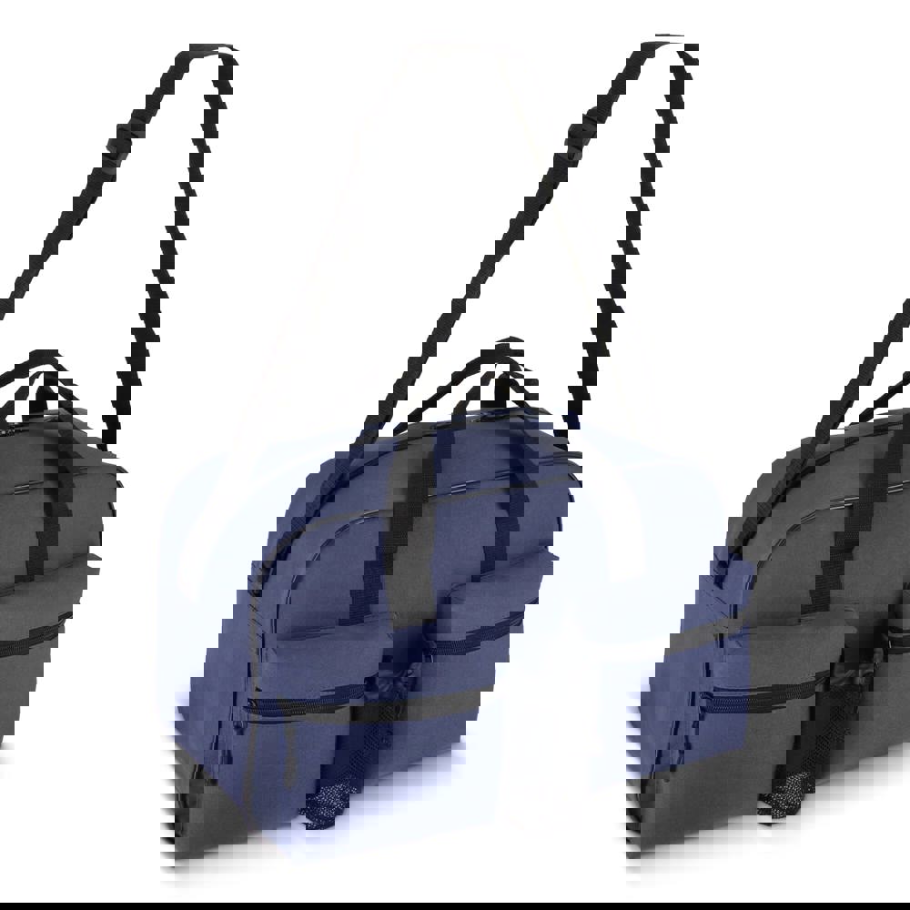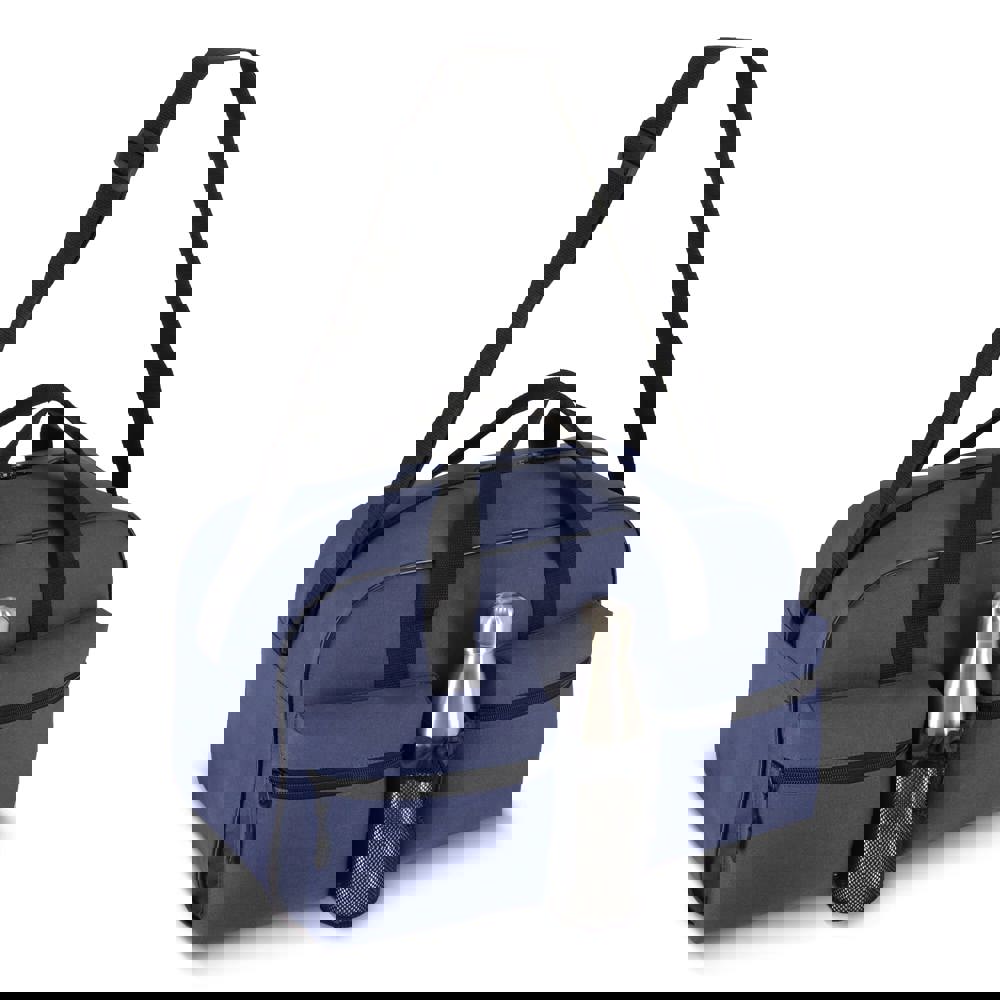 Sport- en reistas van duurzaam 600D gerecycled PET. Voorzien van een draaghandvat, verstelbare schouderriem, twee voorvakken met ritssluiting voor snelle toegang tot je belangrijkste spullen en een mesh vak voor je fles. De perfecte tas voor naar de sportschool of onderweg.