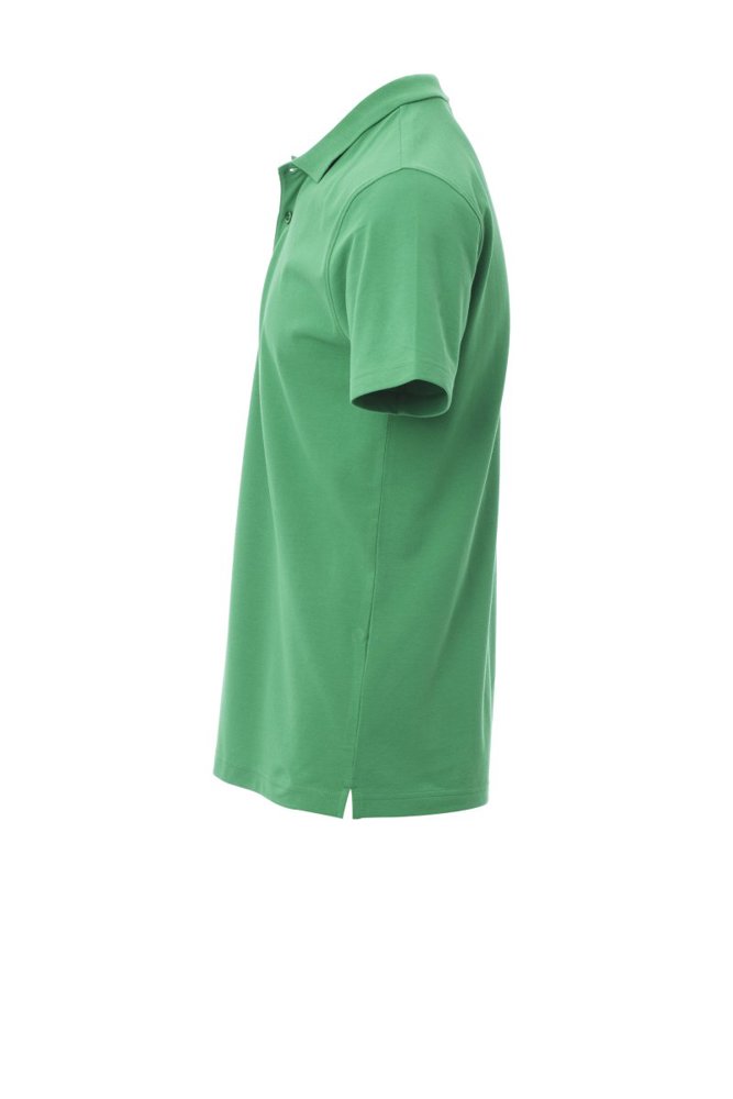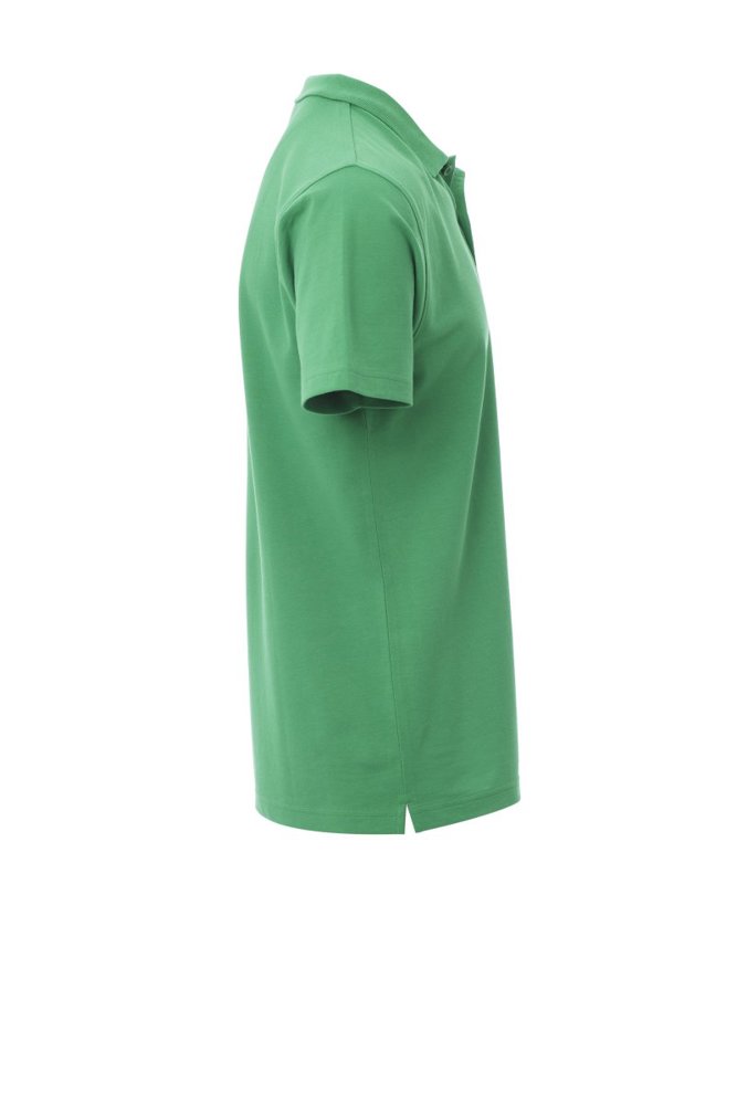 Poloshirt met korte mouwen met 3 parelmoer knopen in dezelfde kleur, splitten opzij, stiksels van de hals afgedekt met band in dezelfde kleur.