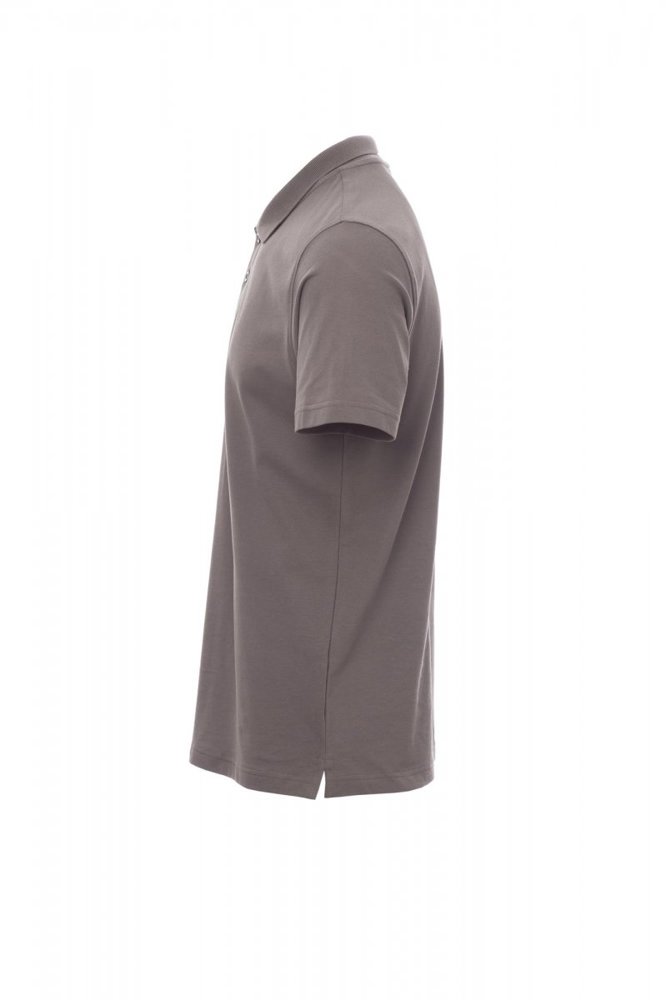 Poloshirt met korte mouwen met 3 parelmoer knopen in dezelfde kleur, splitten opzij, stiksels van de hals afgedekt met band in dezelfde kleur.