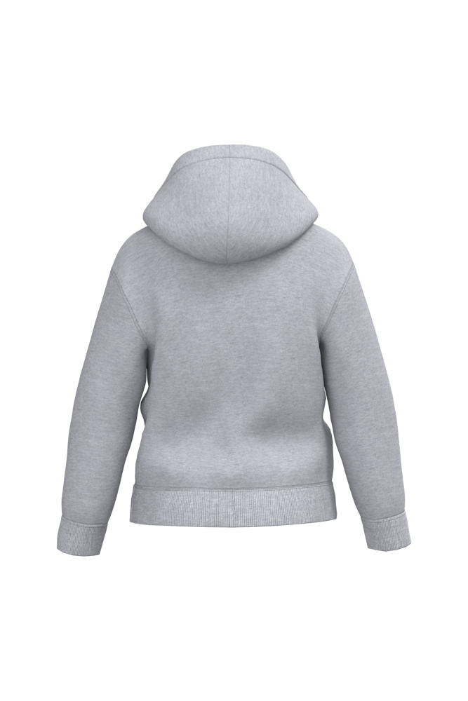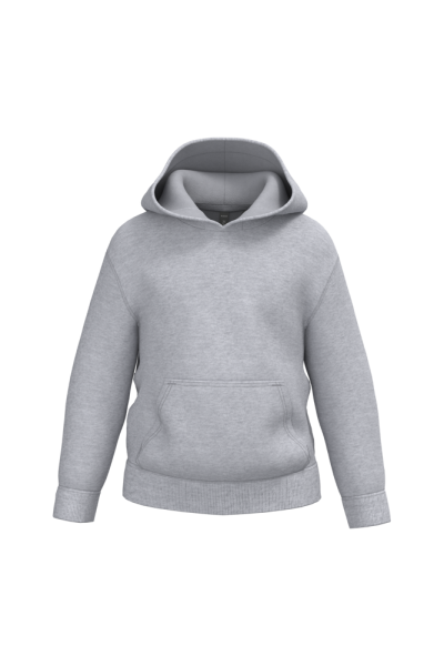 50% ringgesponnen katoen / 50% post-consumer gerecycled polyester. Geborsteld fleece aan de binnenkant. Straight snit. Cut-and-sew. Enzymgewassen. 2x1 ribboord in buisconstructie voor een betere afwerking aan hals, mouwuiteinden en onderkant. Dubbel stiksel aan schouders, mouwinzet, mouwuiteinden en onderaan. Kangoeroezakken. Capuchon gevoerd met jersey. Ton-sur-ton nektape van jersey in de hals. Geen merklabel, maar een maatlabel in de kraag voor eenvoudige personalisatie.