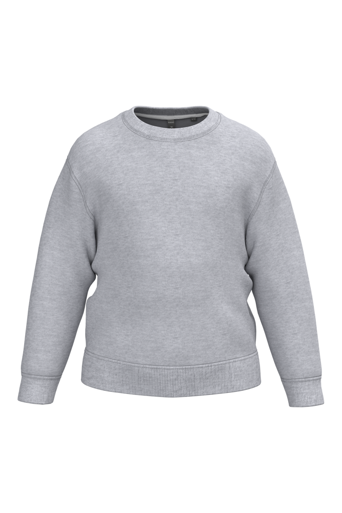 50% ringgesponnen katoen / 50% post-consumer gerecycled polyester. Geborsteld fleece aan de binnenkant. Straight snit. Cut-and-sew. Enzymgewassen. 2x1 ribboord in buisconstructie voor een betere afwerking aan hals, mouwuiteinden en onderkant. Dubbel stiksel aan schouders, mouwinzet, mouwuiteinden en onderaan. Ton-sur-ton nektape van jersey in de hals. Geen merklabel, maar een maatlabel in de kraag voor eenvoudige personalisatie.