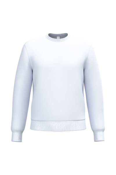 50% katoen / 50% polyester. Geruwd molton, tubulair geweven. Rechte snit. Hals, mouwboorden en zoom in 1x1 ribboord met dubbele stiksels. Afneembaar merklabel.