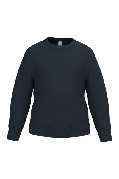 50% katoen / 50% polyester. Geruwd molton, cut-and-sew. Rechte snit. Hals, mouwboorden en zoom in 1x1 ribboord met dubbele stiksels. Afneembaar merklabel.