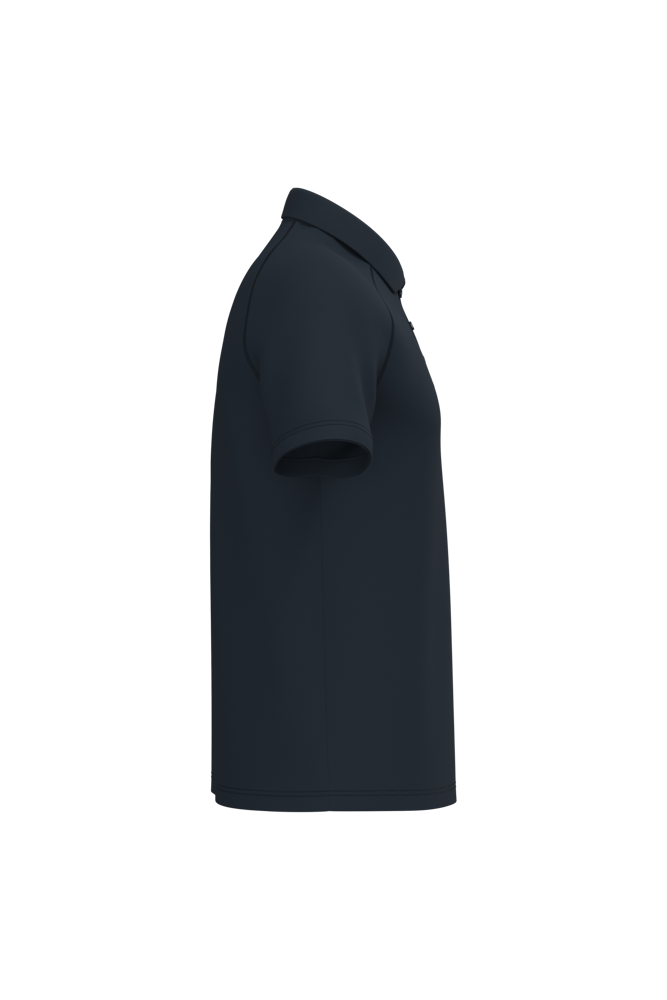 100% polyester. Mesh piqué breisel. Lichtgewicht, sneldrogende stof. Rechte snit. Raglanmouwen met flatlocknaden. Kraag in 1x1 ribboordafwerking. Sluiting met drie toon-op-toon knopen. Toon-op-toon nektape aan de binnenzijde. Mouwboorden en zoom afgewerkt met dubbele stiksels. Afneembaar merklabel.