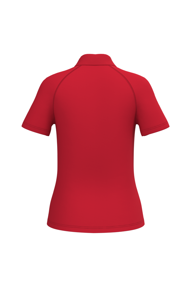 100% polyester. Mesh piqué breisel. Lichtgewicht, sneldrogende stof. Rechte snit. Raglanmouwen met flatlocknaden. Kraag in 1x1 ribboordafwerking. Sluiting met drie toon-op-toon knopen. Toon-op-toon nektape aan de binnenzijde. Mouwboorden en zoom afgewerkt met dubbele stiksels. Afneembaar merklabel.