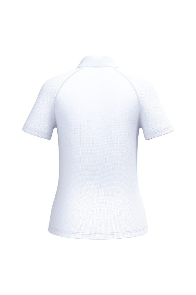 100% polyester. Mesh piqué breisel. Lichtgewicht, sneldrogende stof. Rechte snit. Raglanmouwen met flatlocknaden. Kraag in 1x1 ribboordafwerking. Sluiting met drie toon-op-toon knopen. Toon-op-toon nektape aan de binnenzijde. Mouwboorden en zoom afgewerkt met dubbele stiksels. Afneembaar merklabel.