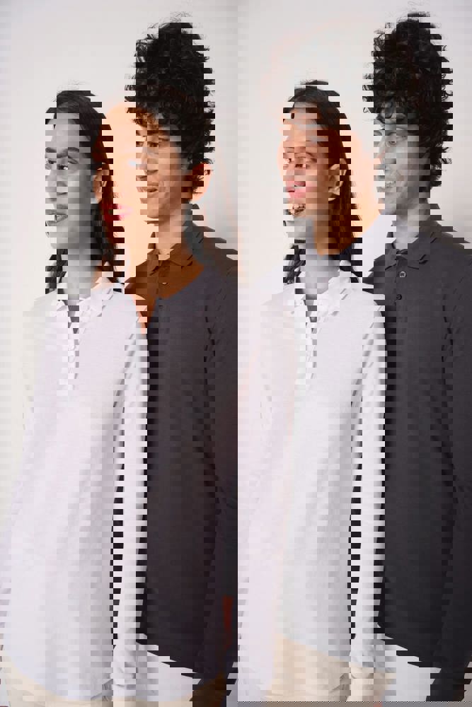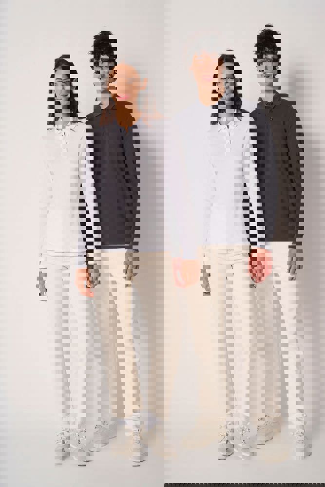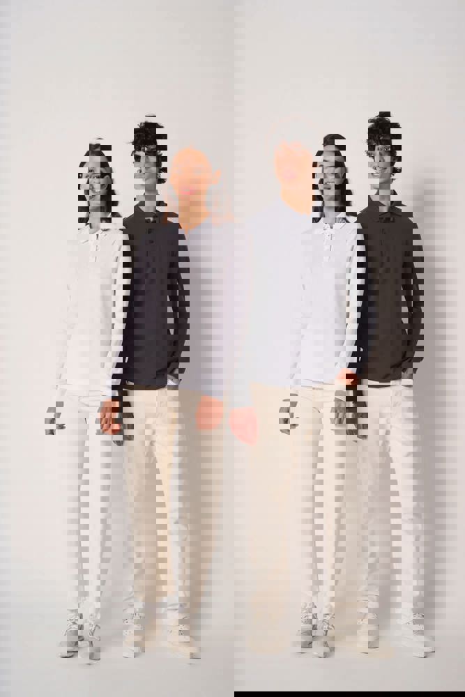 Effen kleuren: 100% katoen. Kleur Ideal Oxford Grey: 90% katoen / 10% viscose. Piqué breisel. Rechte snit. Kraag en mouwboorden in 1x1 ribboordafwerking. Sluiting met vier toon-op-toon knopen. Toon-op-toon nektape aan de binnenzijde. Zijsplitten. Zoom afgewerkt met dubbele stiksels. Afneembaar merklabel.