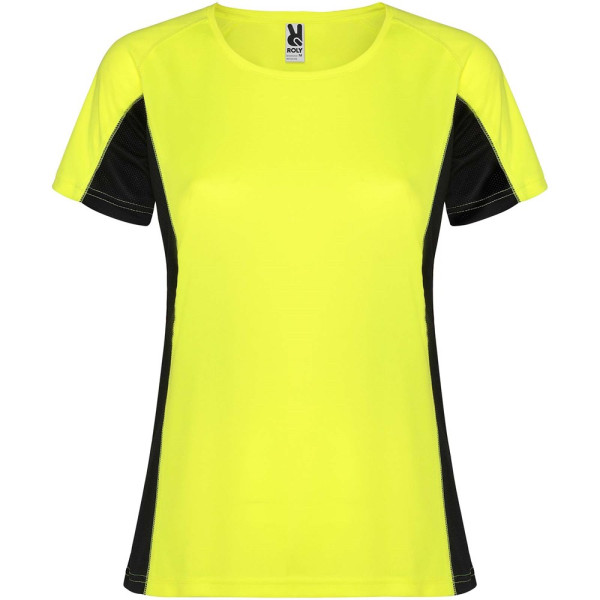 Technische en ademende stof. Een combinatie van twee polyesterstoffen: Hoofdstof van birdseye-stof, zijpanelen en binnenmouw van micro-geperforeerde stof. Ronde hals met binnenin versterkte bedekte naden. Verwijderbaar label.