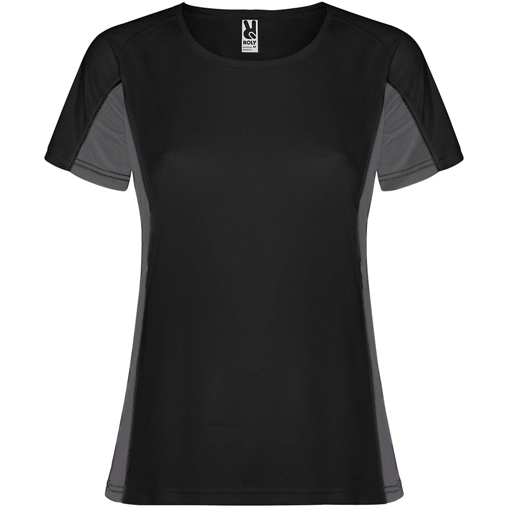 Technische en ademende stof. Een combinatie van twee polyesterstoffen: Hoofdstof van birdseye-stof, zijpanelen en binnenmouw van micro-geperforeerde stof. Ronde hals met binnenin versterkte bedekte naden. Verwijderbaar label.