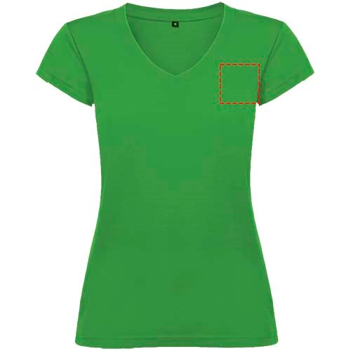 T-shirt met korte mouwen en V-hals voor dames, met 1x1 geribbelde afwerkingen. Slim-fit met zijnaden. Verwijderbaar etiket. Het model is 174 cm en draagt maat S.