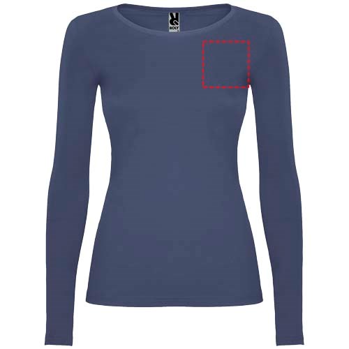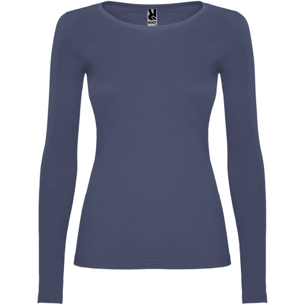 Half getailleerd T-shirt met lange mouwen en fijn afgezette hals. Geen manchetten. Zijnaden. Verwijderbaar etiket.