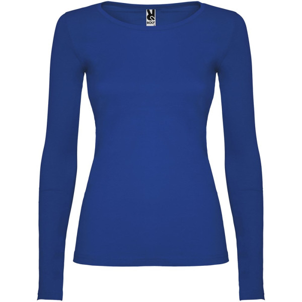 Half getailleerd T-shirt met lange mouwen en fijn afgezette hals. Geen manchetten. Zijnaden. Verwijderbaar etiket.