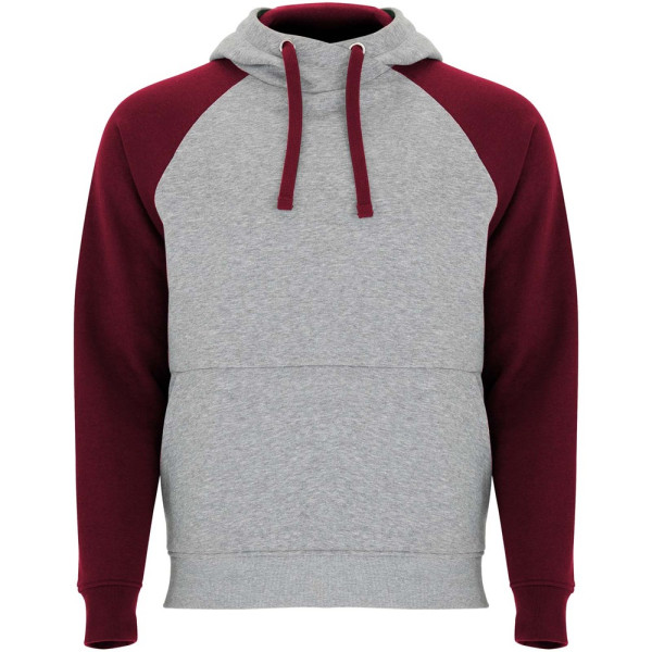 Tweekleurige unisex hoodie. Capuchon met gekruiste hals en metalen oogjes. Contrasterende binnenkant van de capuchon, trekkoord en raglanmouwen. Kangoeroezak. Manchetten en zoom van 1x1 ribgebreid elastaan. Verwijderbaar label.