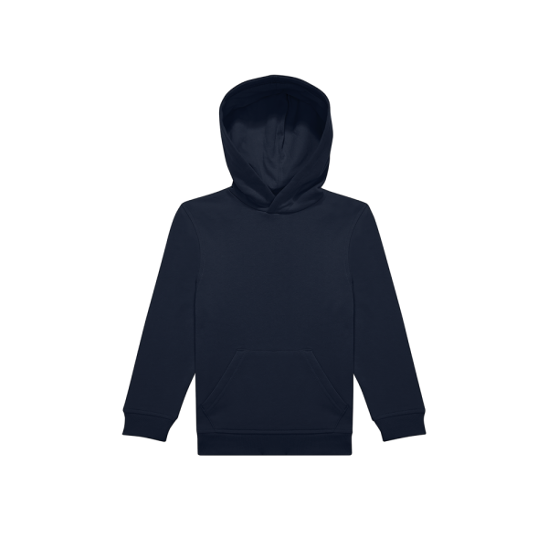 80% voorgekrompen ringgesponnen katoen / 20% gerecycled polyester. Capuchon gevoerd met enkelzijdig jersey. Kangoeroezak. Geen trekkoord voor extra veiligheid. Klassieke boorden en onderzoom in 1x1 elastaan-rib. Zijnaden.