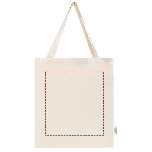 De Madras draagtas gemaakt van 100% GRS-gecertificeerd gerecycled katoen is de perfecte tas om weg te geven tijdens elk evenement, conferentie of om te gebruiken als boodschappentas voor kleine boodschappen. De katoendichtheid van 140 g/m² katoen maakt de tas stevig, gaat lang mee en is geschikt om zware spullen in het hoofdvak te dragen. Met de 30 cm lange schouderhengsels is deze draagtas makkelijk mee te nemen. De afdrukmethoden die beschikbaar zijn voor deze draagtas zijn ook GRS-gecertificeerd, wat ervoor zorgt dat de hele toeleveringsketen transparant en gecertificeerd is. Gemaakt in India. Geschikt voor een gewicht tot 5 kg.