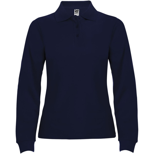 Poloshirt met lange mouwen, geribde kraag en manchetten, sluiting met drie knopen en 1x1 geribde manchetten van elastaan. Versterkte bedekte naden in de kraag. Kleedt slank af. Verwijderbaar etiket. Het model is 168 cm en draagt maat S.