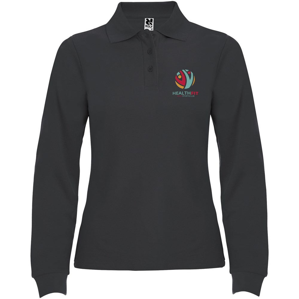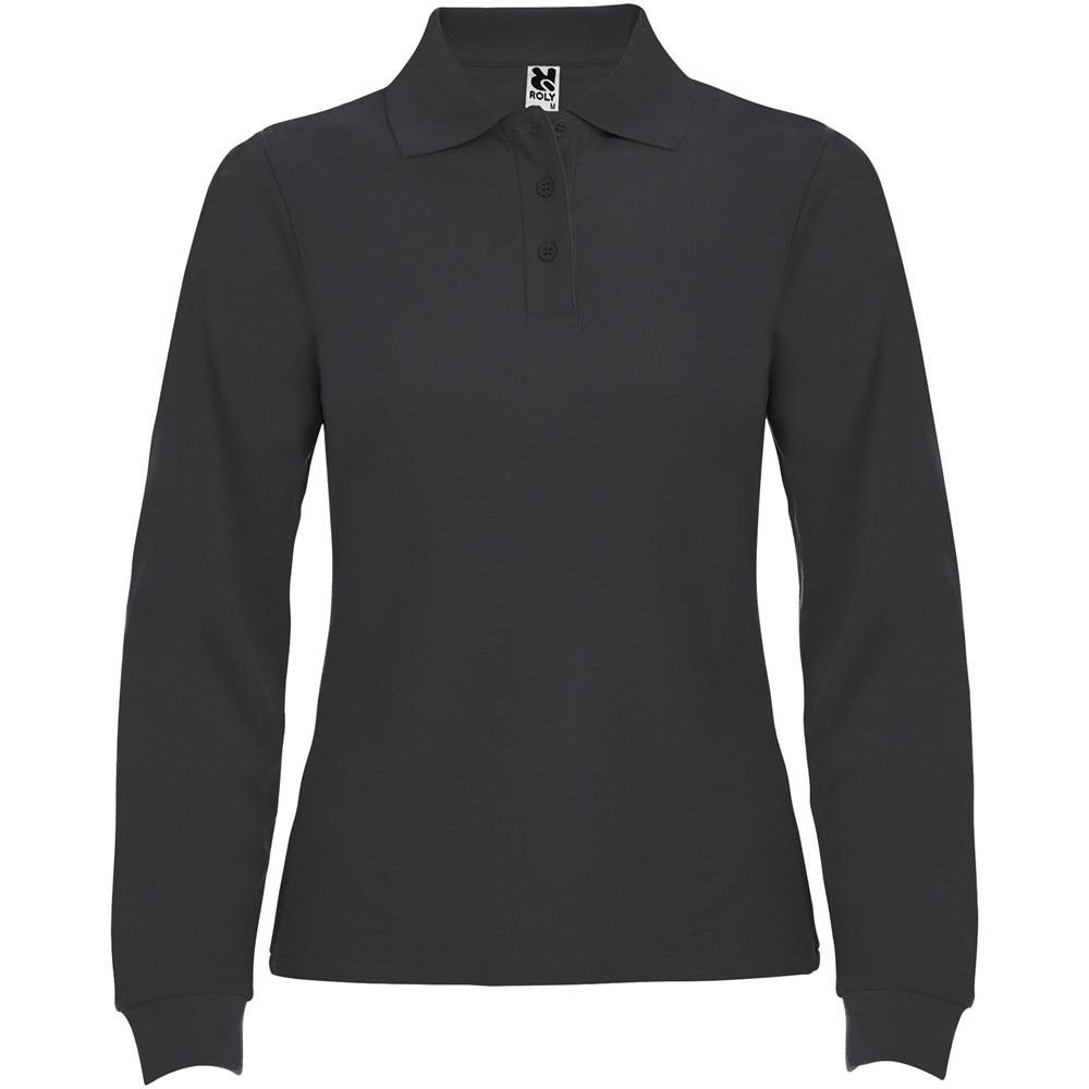 Poloshirt met lange mouwen, geribde kraag en manchetten, sluiting met drie knopen en 1x1 geribde manchetten van elastaan. Versterkte bedekte naden in de kraag. Kleedt slank af. Verwijderbaar etiket. Het model is 168 cm en draagt maat S.