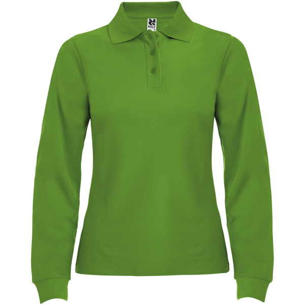 Poloshirt met lange mouwen, geribde kraag en manchetten, sluiting met drie knopen en 1x1 geribde manchetten van elastaan. Versterkte bedekte naden in de kraag. Kleedt slank af. Verwijderbaar etiket. Het model is 168 cm en draagt maat S.
