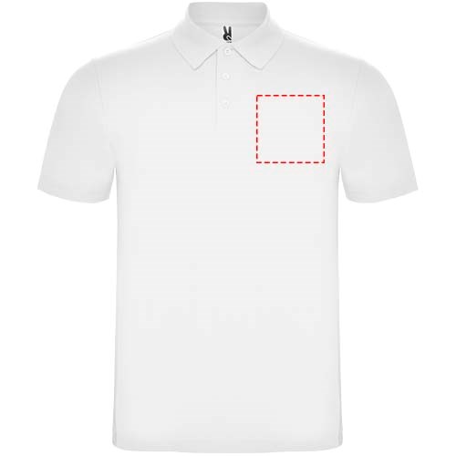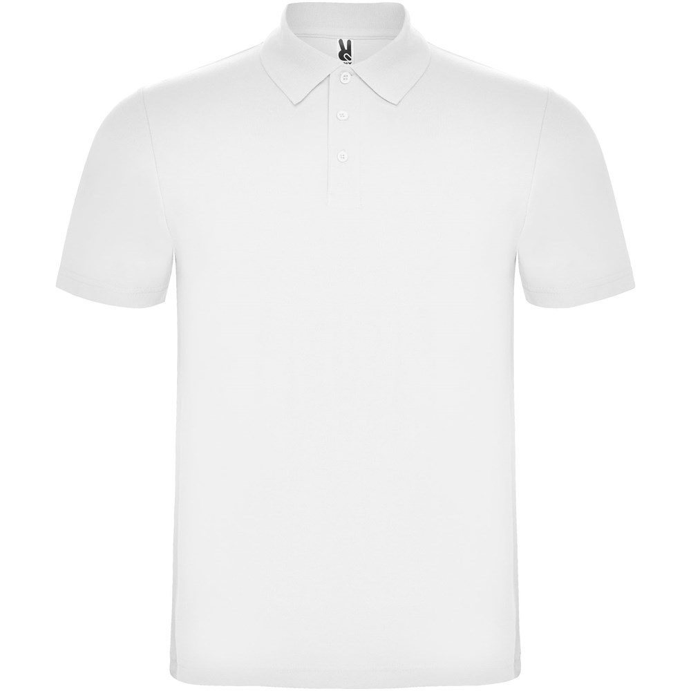 Poloshirt met korte mouwen, sluiting met drie knopen en 1x1 geribde kraag. Versterkte bedekte naden in de kraag. Verwijderbaar etiket. Het model is 190 cm en draagt maat L.