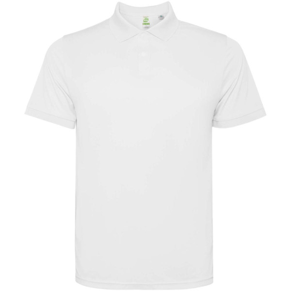 Herenpolo met korte mouwen. Versterkte bedekte naden in de binnenkraag. 1x1 geribde manchetten en kraag. Zijnaden. Knoopsluiting met 3 knopen en zijsplitten.